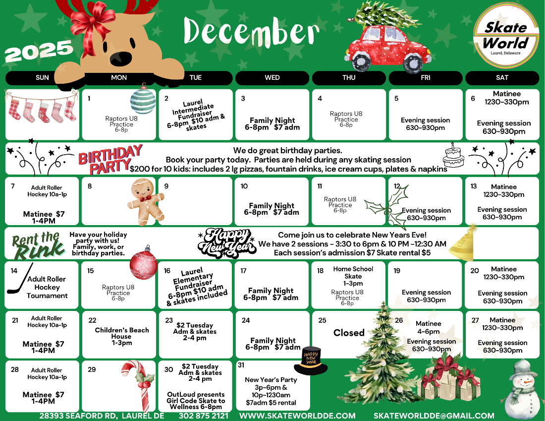 Read MoreBring the family in and lace up those skates. Our Saturday evening skating is family oriented. We skate from 630-930pm, Cost is $10 admission & $5 skate rental. Skate mates can be rented during this session.